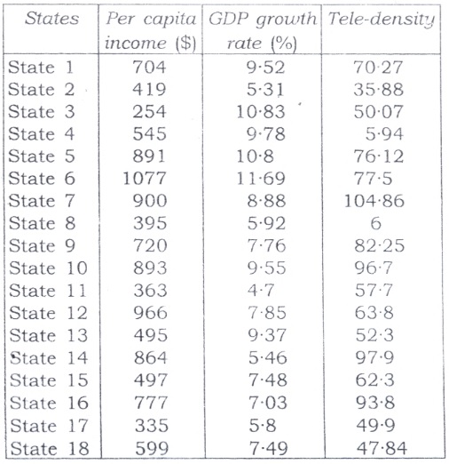 The following table gives the GDP growth rate and Tele-density data of different States of a country in a particular year. Study the table and answer the two items that follow.