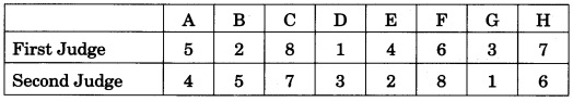 Q7. (a) In a contest, two judges ranked eight candidates A, B, C, D, E, F, G and H in order of their preference as shown in the following table. Find the rank correlation coefficient.